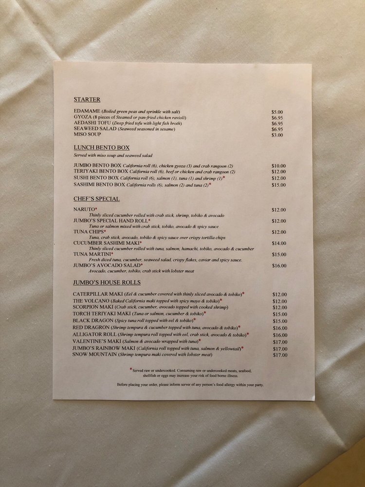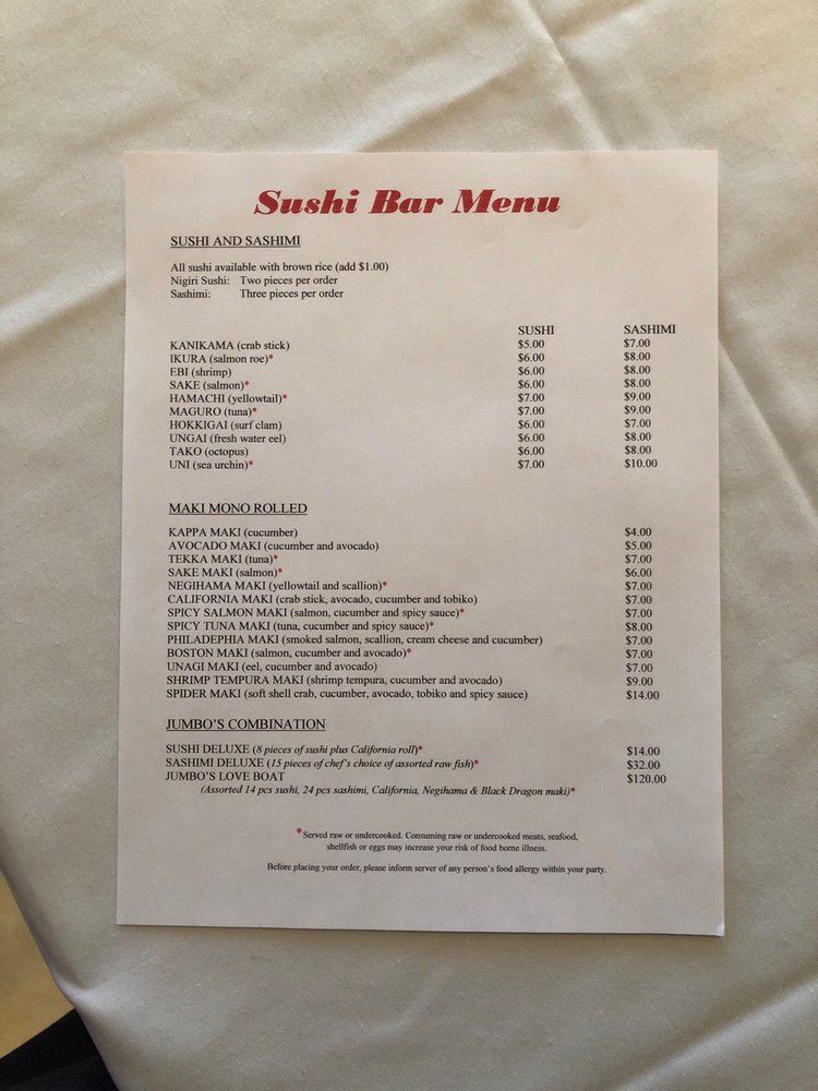 Jumbo Seafood, a Chinese seafood restaurant located in Newton, MA, offers a wide range of menu options. From Luncheon Dim Sum specials like Pan-fried Turnip Cake in XO Sauce to appetizers like Vegetable Spring Rolls and Soups such as Hot and Sour Soup, there is something for everyone. Customers rave about the generous portions, juicy lobster, and flavorful dishes. The coconut broth with chicken and lobster fried rice stand out as must-try items. The addition of a new sushi chef has elevated the quality of the food, making Jumbo Seafood a go-to spot for fresh sushi and sashimi. The friendly service and cozy atmosphere add to the overall dining experience, making it a favorite among patrons. If you're in the mood for seafood and Chinese cuisine, Jumbo Seafood is the place to be.